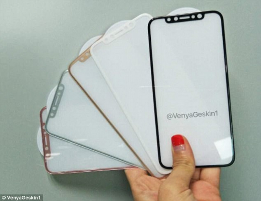 Впервые новые фотографии восьмого iPhone появились в сети в конце апреля 2017 года. Латвийский блогер Бенджамин Гескин показал снимки макетов нового смартфона от Apple. Инсайдер утверждал, что фотографии ему прислал друг, получивший их на заводе Foxconn. На одних фото смартфон полностью выполнен из металла, тогда как на других он имеет стеклянную заднюю поверхность, как у iPhone 4. Тогда Гескин говорил, что телефон получит безрамочный дисплей. Более того, судя по его снимкам, сзади у нового iPhone имеется прорезь под обновленную двойную камеру с вертикальной ориентацией модулей. То, что будущее устройство получит сканер отпечатков пальцев, на тот момент еще оставалось под вопросом.