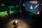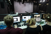 Второй ярус фойе отвели под бар и зону отдыха с буфетом и компьютерами для просмотра все тех же прямых трансляций из зала. Неподалеку находится и помещение медиацентра. Он занимает около 150 квадратных метров, и является, по сути, главной площадкой для экпериментов в области интернет-театра. Аппаратная выглядит как большая телевизионная студия, оборудованная цифровыми видеокамерами, современным освещением и звукозаписывающей техникой. Там же появится монтажный центр и мультимедиа-библиотека.