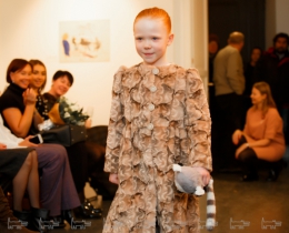 Екатерина Хассе показала детскую коллекцию на фоне картин Леонида Цхэ.