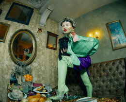 Художница сняла для нас уникальный фотопроект в жанре автопортрета, для которого ей потребовались красный конь, три ноги, желтые питоны — и никакого фотошопа.