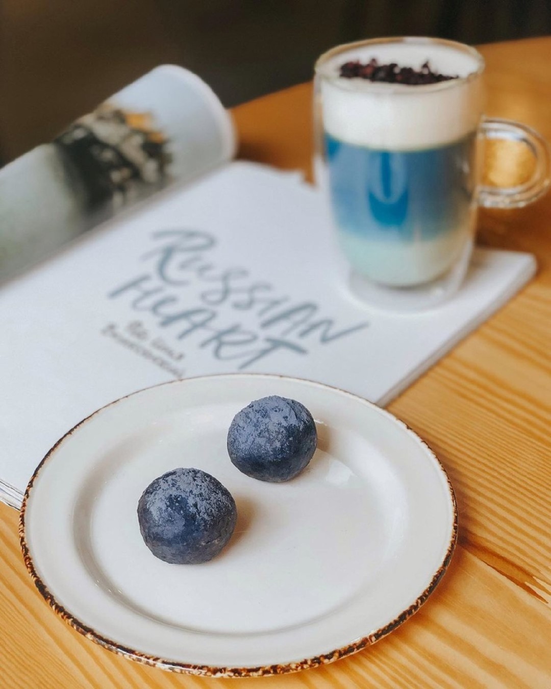 Эко-пекарня «КОРЖ» представляет новый десерт – халва с голубой матчей. Конфеты сделаны из арахисовой пасты с добавлением кокосового масла, меда, сушеной малины и тайского анчана.