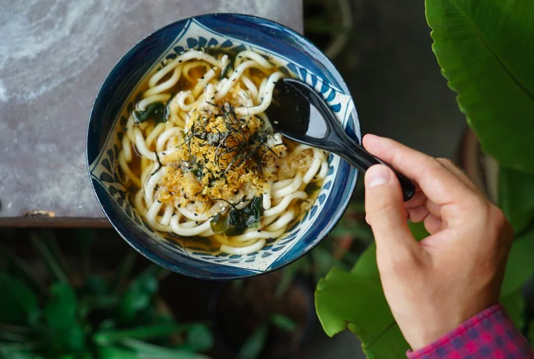 В «Искре» новое ланч-меню. Пробуем кальцоне с курицей и вешенками (170 рублей), удон с курицей и арахисом (170 рублей), гречневую лапшу с судаком и кальмаром (180 рублей), салат котей с имбирной закваской (140 рублей), салат с печеной свеклой и сыром фета (120 рублей), суп том кха с судаком (150 рублей), домашнюю солянку (140 рублей).