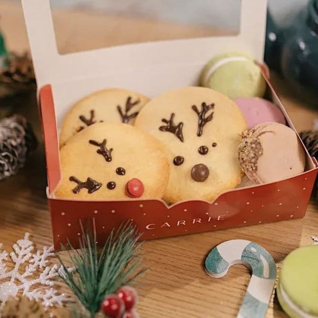 Carrie предлагает подсластить последнюю неделю подарками. На твой выбор набор эклеров (730 рублей), набор капкейков (850 рублей), набор пончиков (405 рублей), фисташковый рулет (1240 рублей). Хочешь удивить друзей новогодней тематикой? Тогда закажи набор с печеньем и макаронс (470 рублей), набор из пяти маршмеллоу на палочке (230 рублей), имбирные печеньки с маршмеллоу (330 рублей).