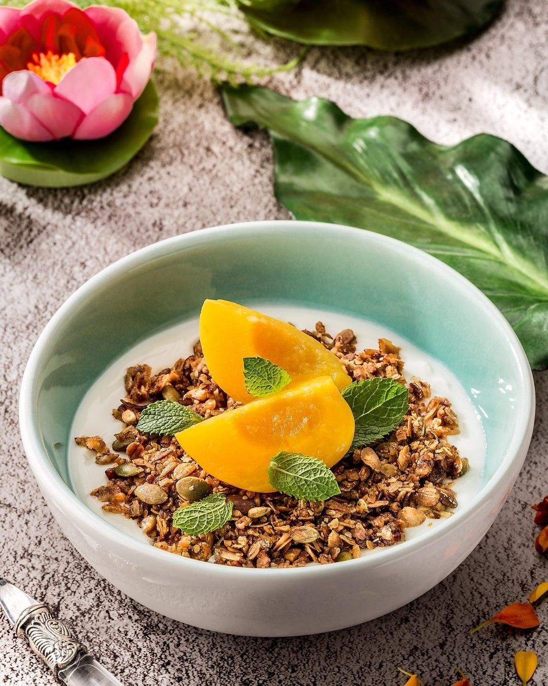 Новый завтрак в «Комоде»: гранола с медовым персиком подается под легким натуральным йогуртом (210 рублей).