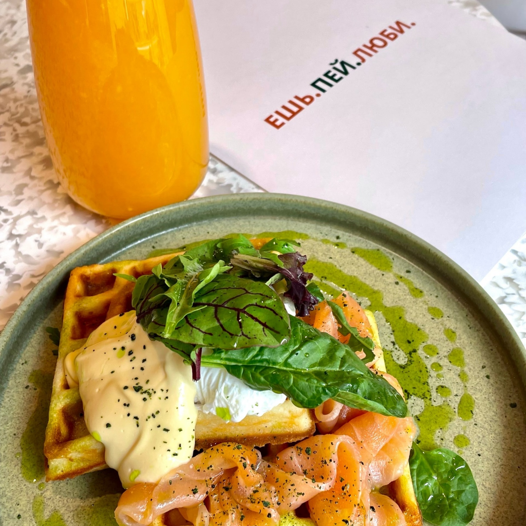 Кто сказал, что все собаки любят ранние прогулки? Если ваш питомец просыпается ближе к обеду, после променада можно зайти в «Люблю», где специализируются на завтраках, поэтому подают их весь день.