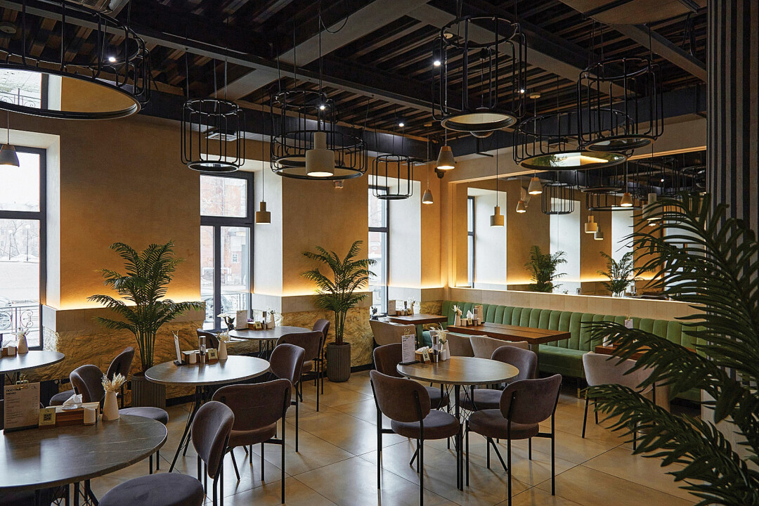 В первую очередь, мне хотелось создать заведение, которое помогло бы поднять гастрономическую культуру города. Но, если говорить о фишках и особенностях формата, мы подарили каждому из трех этажей ресторана свою концепцию: на первом этаже расположилась кофейня с завтраками и десертами из нашей собственной кондитерской, второй этаж представляет из себя винный зал с большим ассортиментом тщательно подобранных букетов из разных уголков света и блюда из морепродуктов, а на третьем – мансарда, меню которой по достоинству оценят ценители мясных деликатесов. А один из центральных элементов интерьера – стильная винтовая лестница.