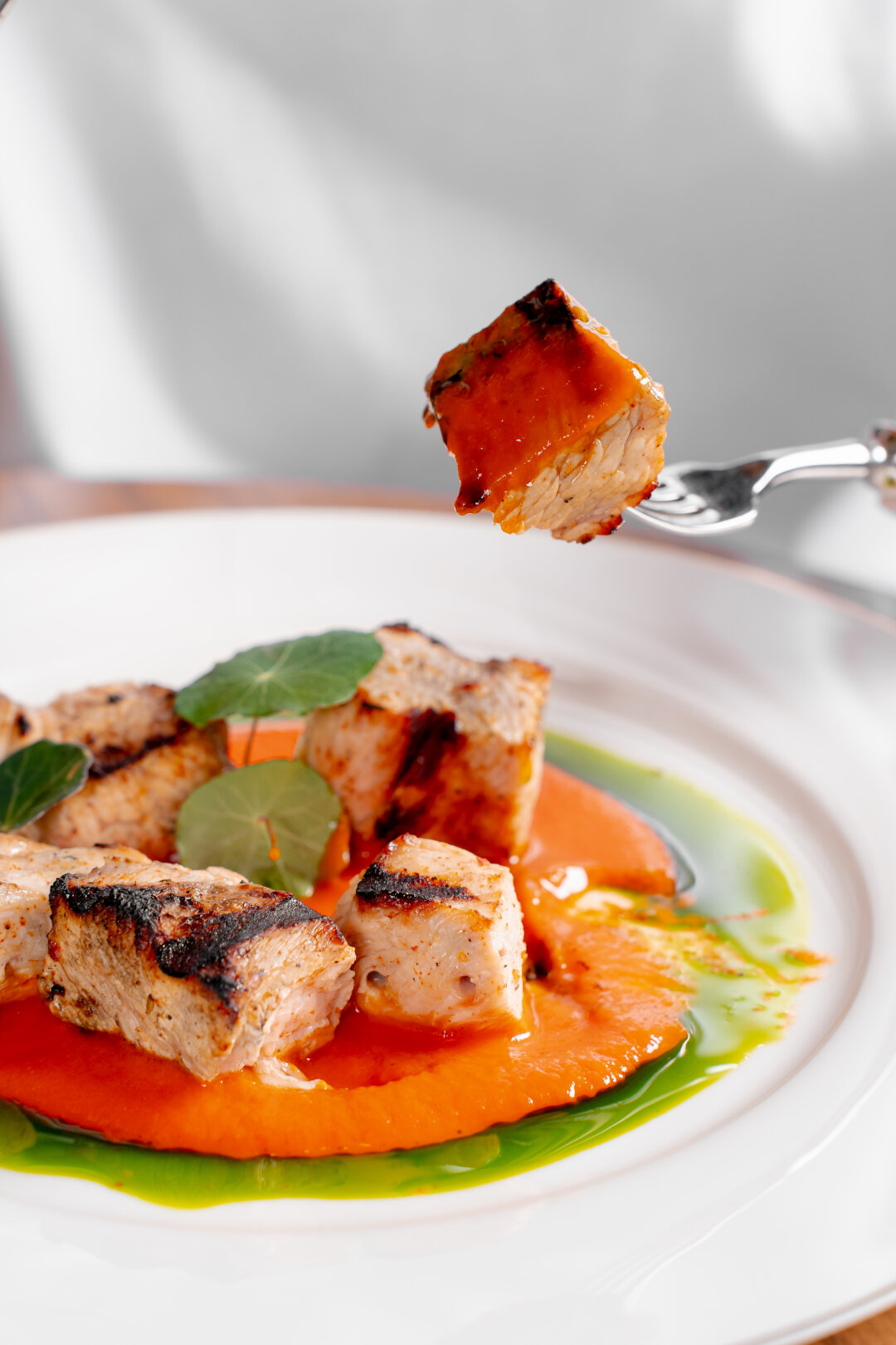 Настоятельно рекомендую попробовать волжского линя, запеченного с соусом цитрон и свежим тимьяном – хоспер и идеальная сервировка этого блюда обеспечивают гармоничное сочетание цвета, текстуры и аромата. А мясистое и чуть сладковатое мясо линя отличается насыщенным вкусом, плотной и нежной текстурой и не дает горечи, как щука.