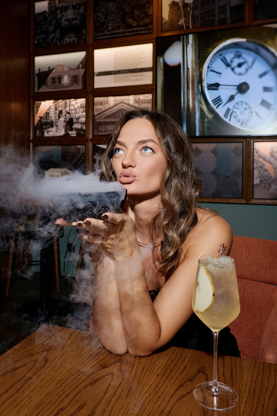 Сама атмосфера ресторана, расположенного в бывшем доходном доме Соломона Гринберга, заставляет окунуться в исторический контекст. С креманкой игристого и лавачетте с лососем, чтобы все-таки не терять связь с реальностью.