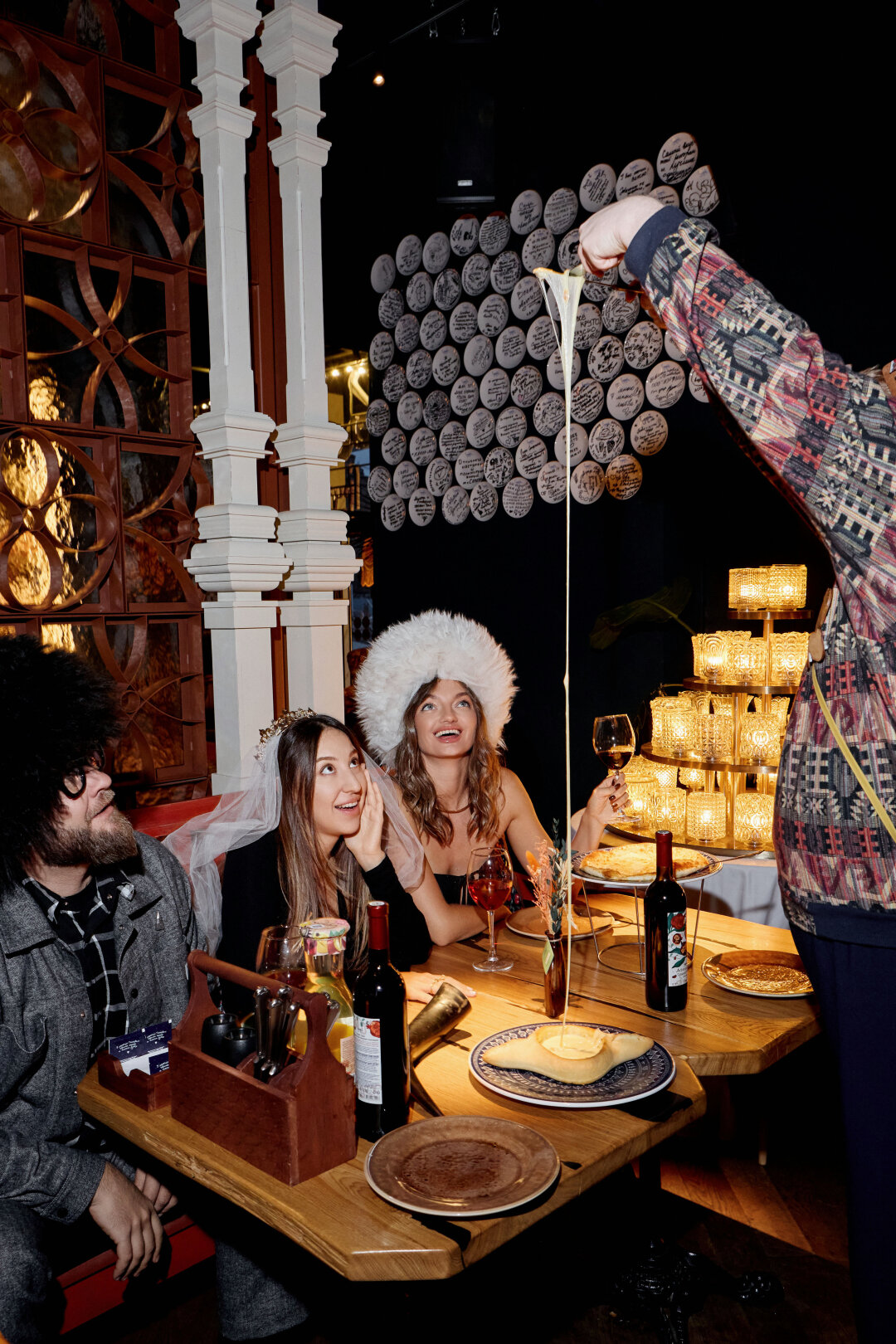 Вкусно, весело, очень по-грузински. Иммерсивный ресторан, где официанты становятся гостями, а ты – частью большой истории. Можно выпить красного из рога, проиграть в кости, объесться хинкали и ненароком выйти замуж за соседа по столику.