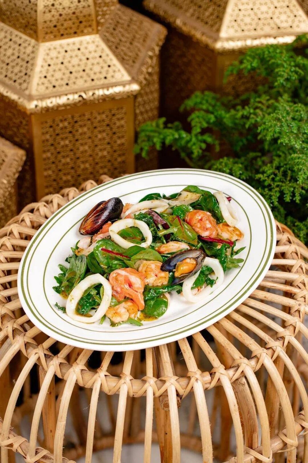 Для тех, кому недостаточно просто овощей, рекомендуем салат с морепродуктами – нежные креветки, кальмары, слабосоленый лосось, микс свежей зелени, оливковое масло и медово-горчичный соус – компромисс между детоксом и счастьем.