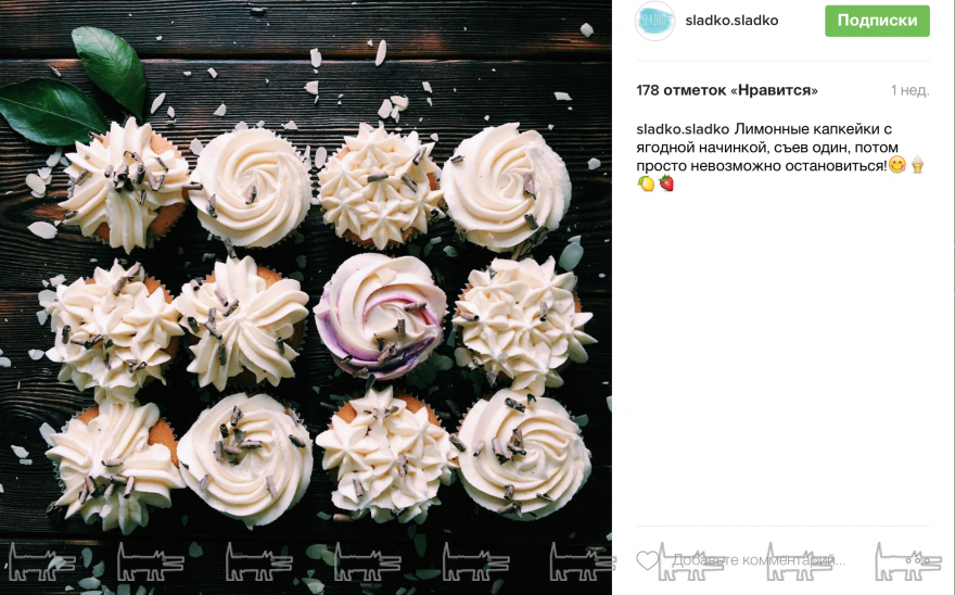 Сладкие истории — в этом весь сахар инстаграма. Елена Ботанова умеет разговорить подписчиков: все подписи к фото напоминают письмо другу. Если сами картинки просты и не стилизованы, то о десертах такого не скажешь. Советуем опускать взгляд в комментарии.