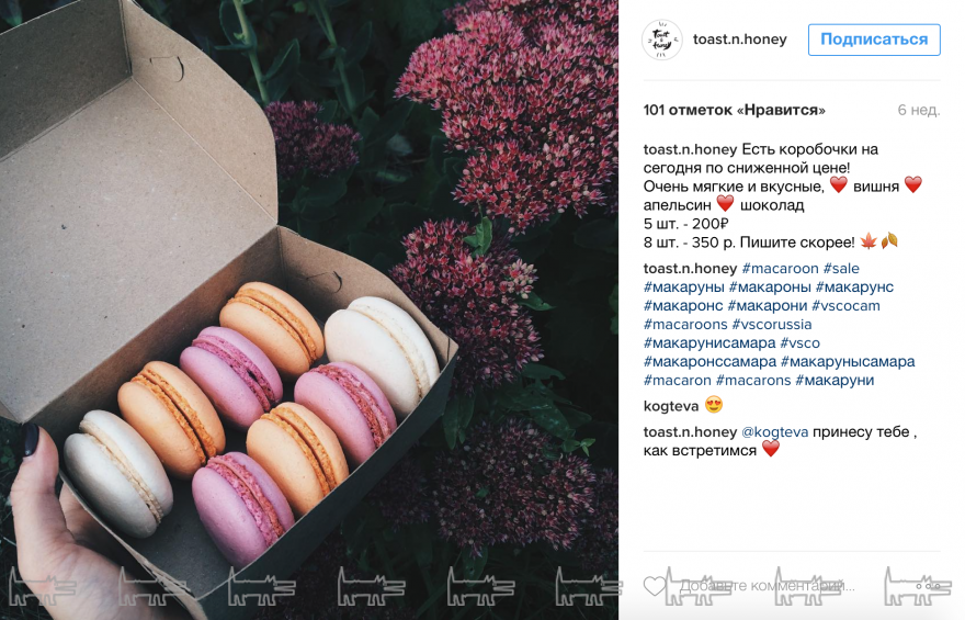Из полного названия Toast & Honey Macarons and cakes ясно, что главные герои здесь макароны и торты. Приятно видеть сладкие наборы на разных фонах. Стилизованные картинки делают инстаграм не просто зеркалом для выпечки, но и тематической фотогалерей, из которой только и остается, что выбирать новую заставку на телефон.