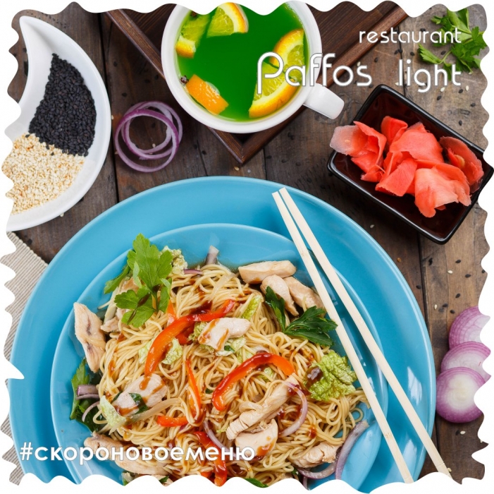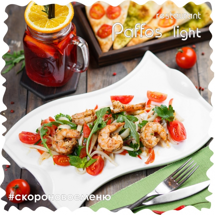 Мы узнаем новости первыми и рассказываем своим читателям. Так вот, новое меню в PAFFOS LIGHT еще не появилось, а ты о нем уже знаешь! Анонсируем: ресторан средиземноморской кухни готовит выход на кулинарную арену таких блюд, как стейк из индейки, салат с говяжьим ростбифом, печеной свеклой и маринованными грибами, грибной суп-пюре, а также порадует пикантной заморской кухней: представит тайскую лапша с курицей и овощами и тайский салат с морепродуктами и томатами. Не на шутку согреют в холода горячие и горящие напитки из нового меню. С нетерпением ждем!