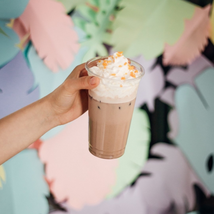 Coffee Jungle химичит новые напитки. Теперь из кофейни, выходя с широкой улыбкой на лице, в руках можно держать цитрусовый какао. Правда, звучит по-летнему? Простая и вкусная идея: совместить напиток, гору взбитых сливок на верху и апельсиновую цедру, как украшение.