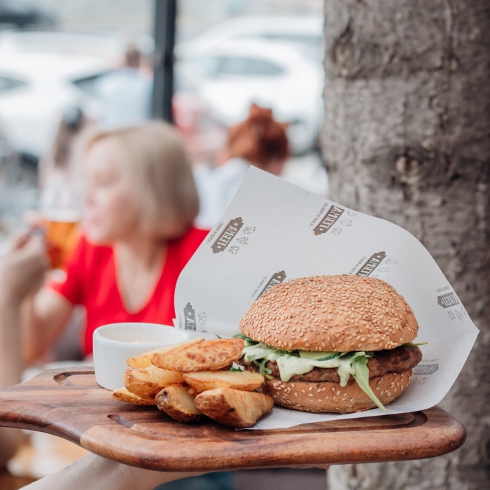 У кафе Ferma два вкусных предложения: обновленное меню бизнес-ланча и новые бургеры. Теперь здесь можно попробовать освежающую окрошку со свежеиспеченным хлебом (107 рублей), фермерские салаты с говядиной, цыпленком и языком-гриль (от 127 рублей), на горячее - курица или рыба (137 и 157 рублей), также есть медальоны из говядины и свинины (197 и 157 рублей). Для любителей жаренной котлеты между румяными булочками ресторан представляет бургер Fresh с курицей: внутри найдутся сочный куриный бифштекс, свежие огурцы и помидоры, листья салата и рукколы, щедро политые соусом green (380 рублей). Все подается вместе с розмариновым картофелем и соусом на выбор. Кстати, на заказ с собой заведение дарит бургер с 10% скидкой.