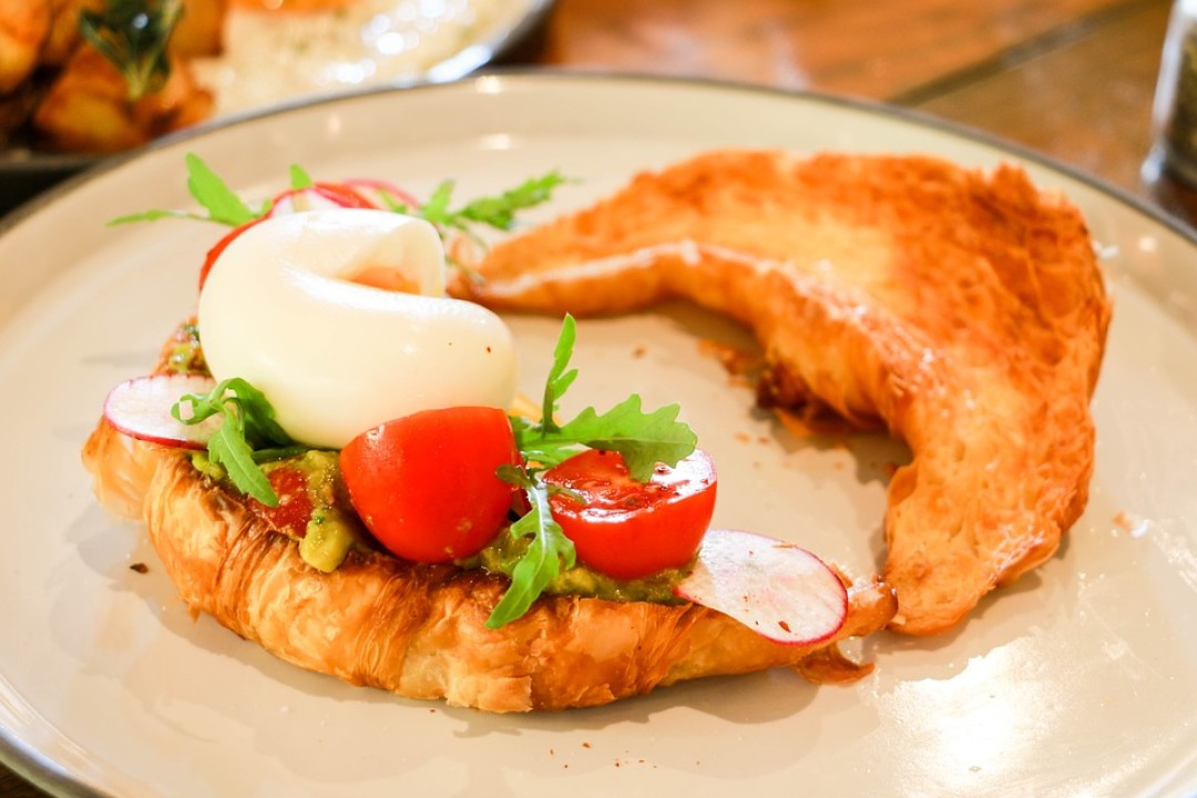 «Покетерий» радует не только сытным поке, но и маленькими перекусами. Например, круассан с лососем разнообразит рацион.