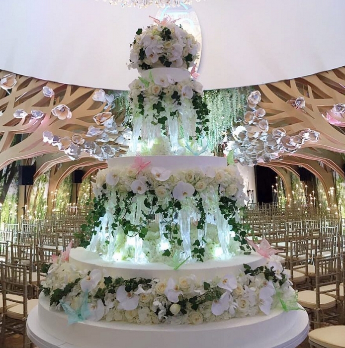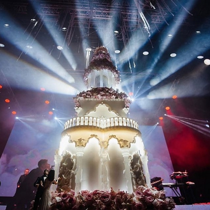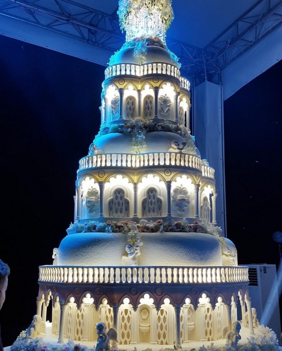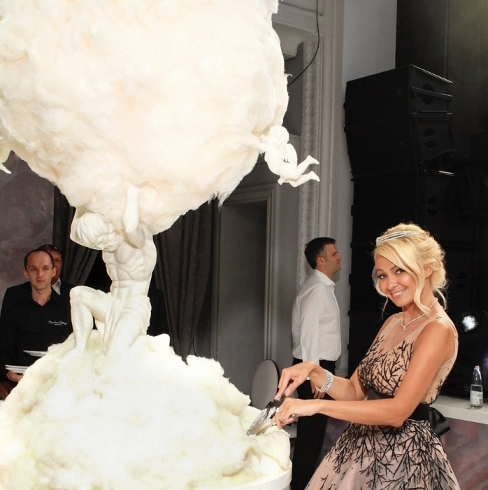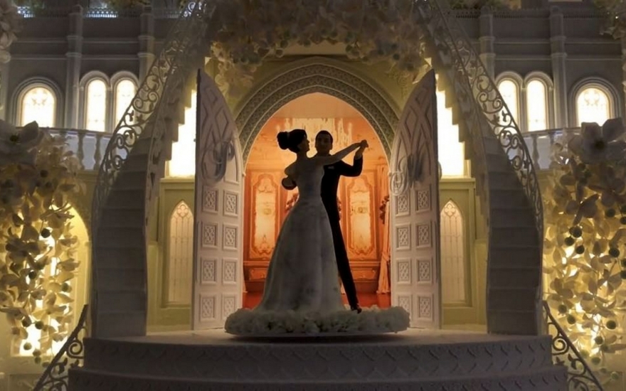 На сегодняшний день это – «Цвингер», точная копия одноименного замка, который находится в Дрездене. Внутрь торта надо было вмонтировать мониторы, на которых показывали видео жениха и невесту. Нам пришлось установить систему вентиляции: такая технология использовалась впервые в мире, она нужна была для того, чтобы торт не таял от нагрева мониторов.