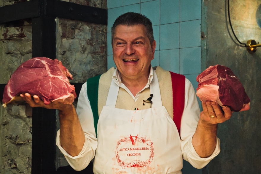 Всемирно известный мясник, профессионал в восьмом поколении, в свой лучший в Италии мясной ресторан в деревушке Панзано собирает фуди со всего света: петербургский гастроэксперт Алена Мельникова для «Собака.ru» поговорила с ним о перспективах профильной гастрономии в России и том, мешают ли географические границы настоящим ремесленникам.