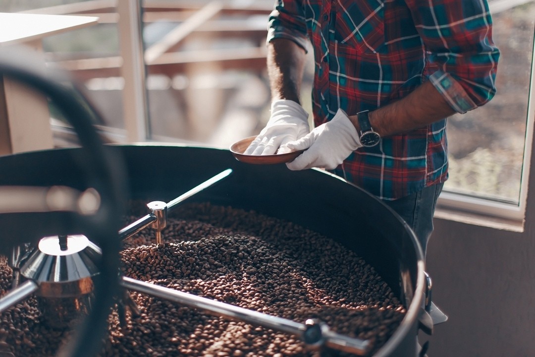 Зеленое зерно засыпается в воронку и жарится в хромированном барабане. В окошко видно процесс обжарки. Через определенное время берется пробник, чтобы понять: достигнут ли нужный оттенок и раскрытие. Затем зерно отправляется на охлаждение. Цена готовой пачки кофе складывается из закупки зеленого зерна премиум-класса и долгого процесса обжарки.