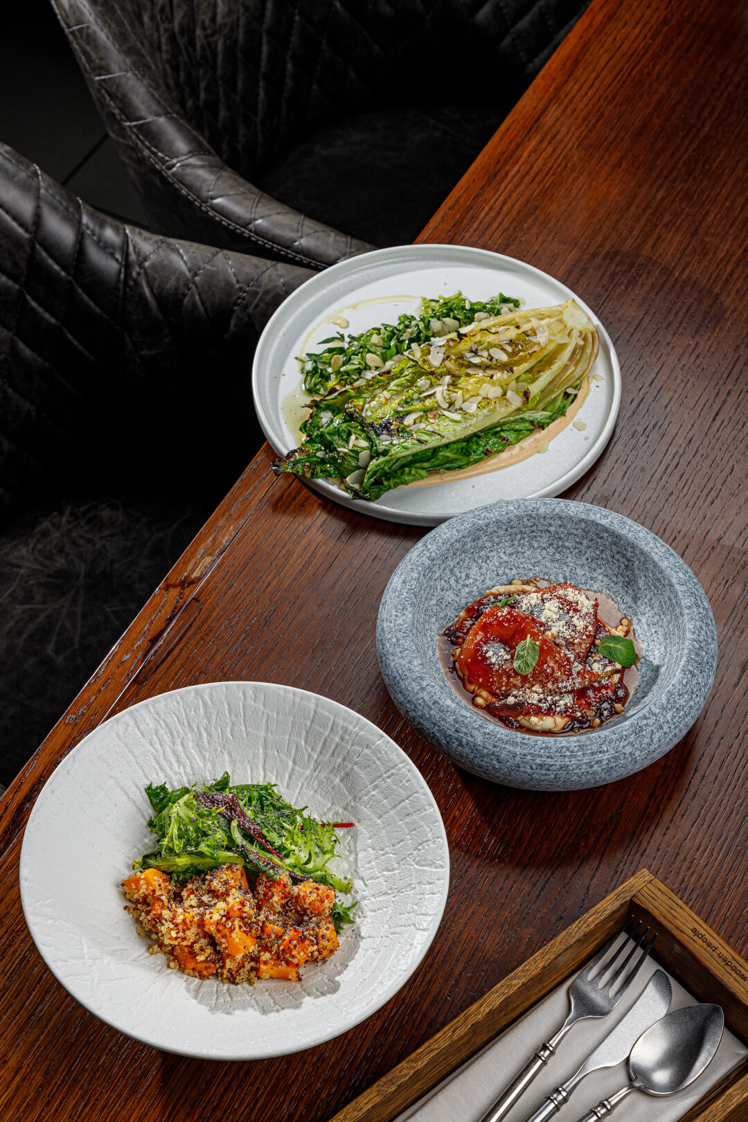 Самое мясное место в городе уже готово встречать всех, кто держит Пост, специальными позициями в меню. Начинаем обед или ужин с салата с киноа и тыквой или отдаем предпочтение картофельному салату с ароматным маслом и соленьями. В качестве основного блюда заказываем печеный батат с «пенной» фасолью и овощной сальсой (или жареный баклажан с постным соусом песто!), а на десерт угощаем себя пряной грушей с банановым кремом и виноградной карамелью. Никаких компромиссов – только чистый вкус и польза.