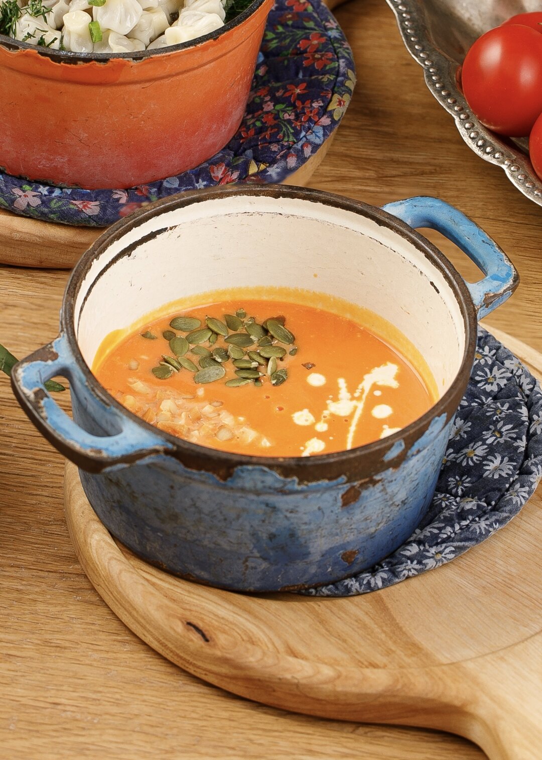Как объединить домашний уют, яркие лучи солнца и насыщенный вкус в одной тарелке? Ответ знает «Супра»! Ощущаем все спектры настоящего грузинского гостеприимства, пробуя тыквенный крем-суп хапи с домашними сливками и терпко-мягким послевкусием копченого сыра.
