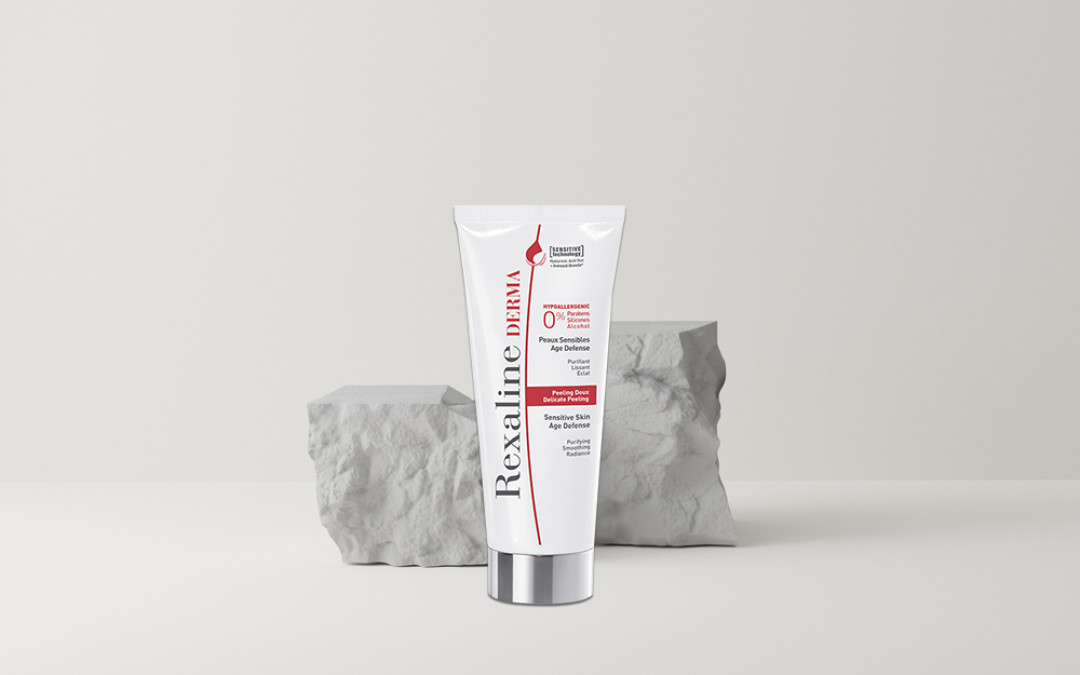Rexaline Derma (специализируются на средствах для уменьшения чувствительности и борьбы с преждевременным старением) разработали пилинг для очень чувствительной кожи. Он отличается тем, что обладает одновременно мягким отшелушивающим действием скраба и успокаивающими свойствами крема.