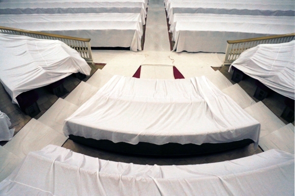 Вероника Рудьева-Рязанцева, медиахудожница и выпускница института Про Арте, изящно исследует жизнь трех петербургских театров Мариинского, Михайловского и Александринского на языке современного искусства. На выставке будут лайтбоксы с фрагментами театральных занавесов, трехканальная видеоинсталляция, где эти занавесы поднимаются и опускаются, а также записанная на видео ария «Признание в любви» на стихи самой художницы в исполнении солистки Мариинского театра Елизаветы Аксаговой.