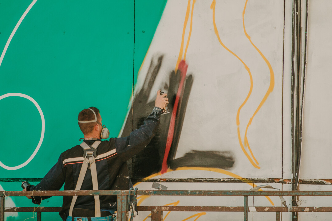 «В прошлом году Марина из команды «Акрон» пригласила меня на роспись ПАЗа в фирменном стиле компании, все остались довольны результатом, поэтому предложили продолжить совместное творчество. Основной идеей этого проекта стал посыл «Акрон в РПЛ». Через масштабную роспись мурала мы хотели выразить поздравления с дебютом футбольной команды в РПЛ и привлечь внимание СМИ и общественности. У меня большой опыт создания муралов (максимальная высота мурала, который я расписывал, достигала 90 метров), поэтому я могу реализовать роспись любой сложности. У Клауса тоже были допуски к высотным работам, а Сева реализовал все задумки в электронном формате, оперативно адаптировал их под размер фасада и сопровождал нас в процессе исполнения. Получается, мы втроем выступали, как единая сила».