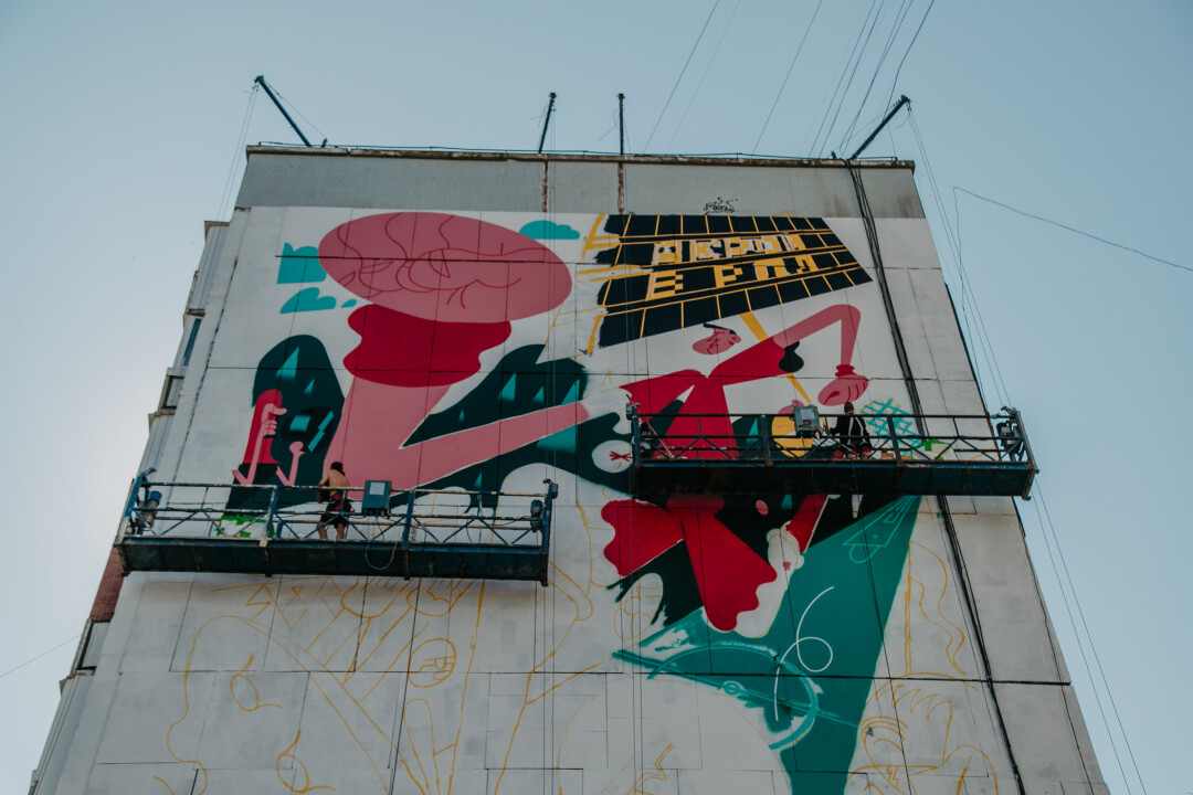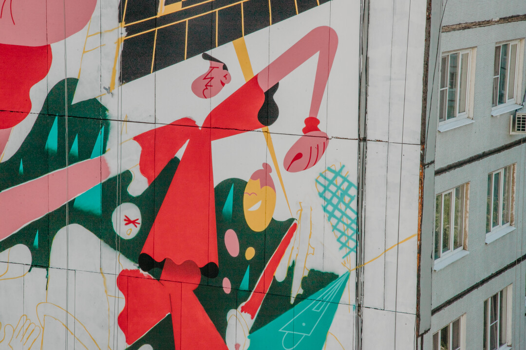 Сева Выводцев, Alex Afix и Клаус создали яркий арт-объект на стене типового дома из серии 121Т.