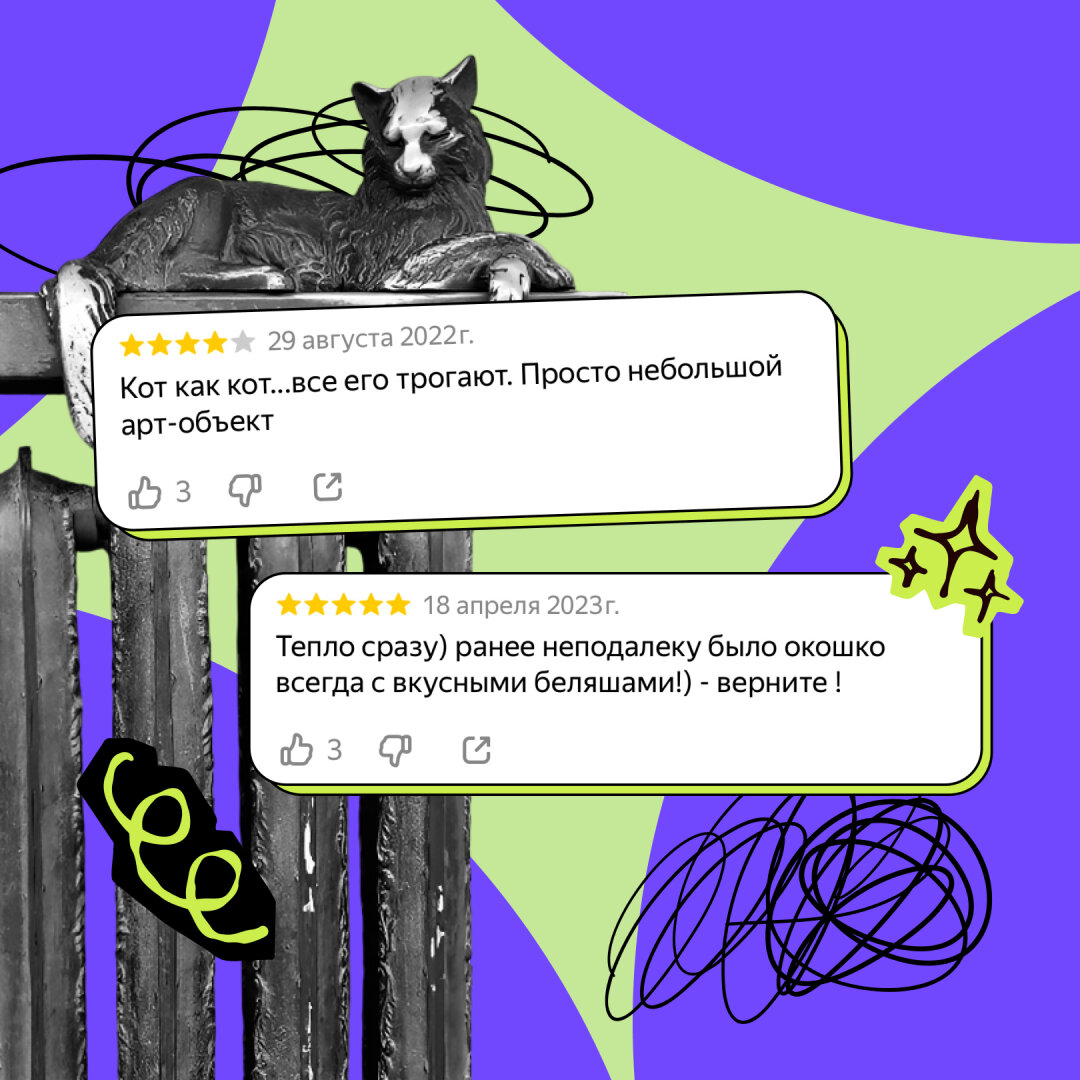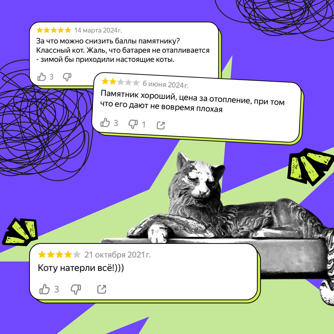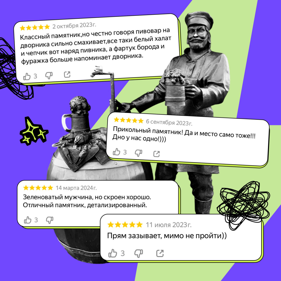 Лапы и хвост – коту, а усы – пивовару! Собрали забавные отзывы на известные скульптуры: от кошки на батарее и Буратино до Дяди Степы и главного ответственного за пенное. Трогать руками разрешается.