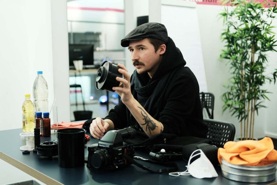 Как-то меня был перерыв года на два, я вообще ничего не фотографировал. Душа не лежала, и, видимо, я проходил этап самокритики. В 2016 году однажды проснулся и понял, что опять хочу фотографировать на пленку. Подходящего помещения не было, я написал объявление во «ВКонтакте», что хочу открыть клуб, пригласил людей вместе заняться фотографией. Народ откликнулся, кто-то отсеялся, в итоге мы стартовали впятером-вшестером. Нам много помогали и помогают: до сих пор приносят химию, оборудование или жертвуют деньги. С третьего переезда мы нашли помещение с проточной водой, что очень важно для занятий фотографий. Потом мы сняли соседнее помещение, сделали хороший дарк-рум и наконец получили удобную студию. Теперь клуб может вздохнуть полной грудью — комфортные условия и место сильно подстегнули нашу деятельность.