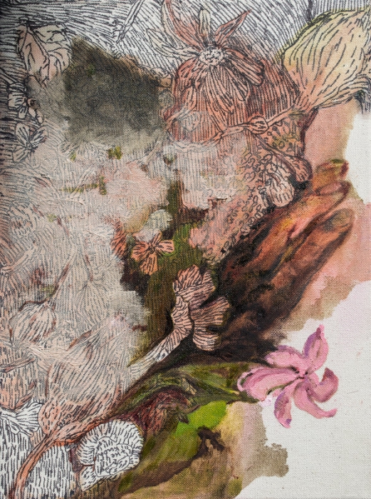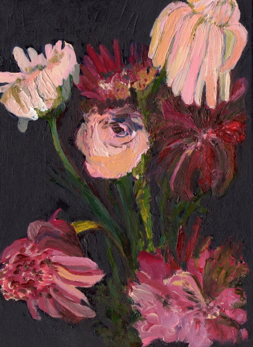 Проект, который я привезла на суд зрителя, называется «Anthophobia», что означает «страх цветов». Этот страх преследовал меня с детства. Когда я прогуливалась по Ленинградской улице, только и видела на картинах художников восприятие богатства флоры. Это было ярко, красочно, но… иногда так безвкусно! С того момента на цветы в своем творчестве я наложила табу. Даже любуясь шедеврами признанных мастеров, я не понимала, почему они их писали. Не так давно я прочла эссе Джорджа Батая «Язык цветов» и эта тема невероятно меня заинтриговала. Я увидела гораздо более глубокий смысл. Цветы ассоциируются с угасанием, потому что их красота временна, так же, как и все на свете. Роскошные букеты радуют глаз, а через какое-то время они превращаются в отвратительную слизь. Каждая из картин, представленных на выставке, имеет историю, подпитанную философским смыслом жизни, и свой контекст. Со стороны они могут выглядеть ярко, но, если подойти ближе, можно увидеть, что это угасающая красота, жизни в этих цветах уже нет. Проект достаточно необычный - в нем присутствуют вечные темы, в том числе и тема ухода, о которой люди обычно не любят говорить. (прим.ред. - художница намеренно избегает слова «смерть»)
