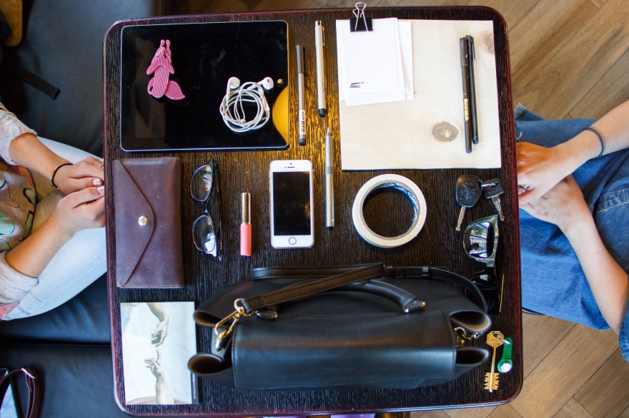 Планшет для графического дизайна. Люблю делать на нем анимированный скетчинг. Всякие маркеры и капиллярные ручки, есть и тонкие, и толстые, еще для графического дизайна ручка, ей рисовать удобнее, чем пальцем. Ключи от машины – я начала водить, моя первая машина, Калина, маленькая, удобная. Ее и содержать легче. Кошелек, приобрела во время своего первого путешествия во Вьетнаме в городе Хойан. Он ассоциируется с тем, что там делают кожаные изделия, льняные костюмы – все под заказ. Супер рукодельные люди.