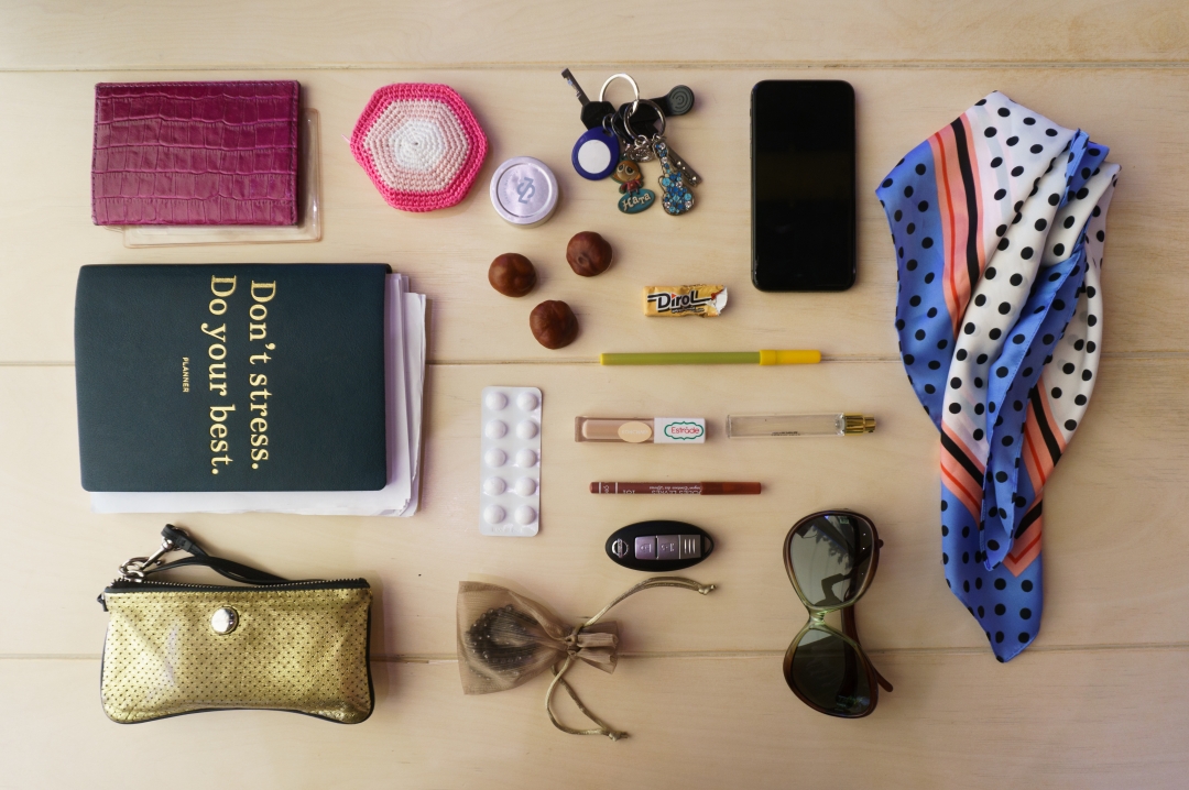 Разумеется, всегда с собой телефон. Сумка моя из Mango, модной формы бочонка. Мужчинам в компании она очень нравится, любят шутить по поводу формы. И еще каштаны – в свое время мне мама сказала, что они отгоняют злых духов. С тех пор ношу их с собой.