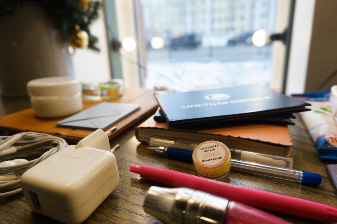 Потом ежедневник. В нем вся «Варка», без него я не выхожу даже в магазин. Все заказы, вся отчетка, когда, что, кому отдать – все здесь. Дальше обязательно масло для тела – руки смазать, когда пересохли – самое то. Зарядки для телефона, и, конечно, сам телефон.
