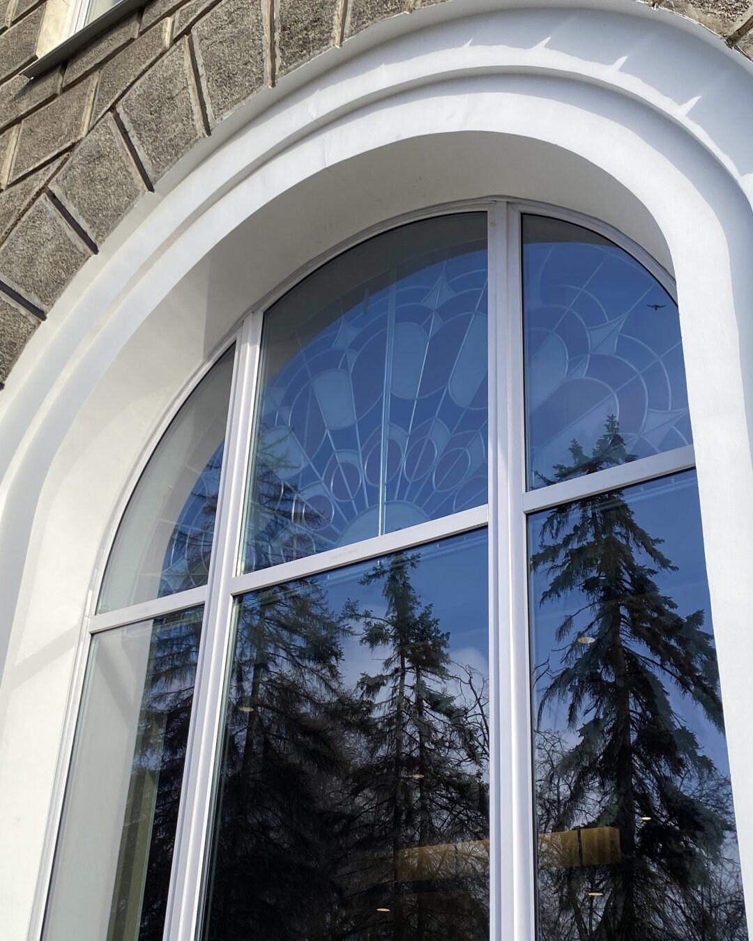 Первым делом я провела сухую чистку с помощью пылесоса, удалила краску с каркаса витража гелем-смывкой и скальпелем, а весь витраж аккуратно помыла. Зафиксировала болтающиеся стекла и приступила к «реанимации» стекол со сколами – подобрала материал, аналогичный по толщине и цвету, и восполнила места утрат. Зафиналила работу шлифовкой стекла хлопчатобумажной ветошью. Посмотреть, что получилось, можно в «Додо Пицце» на Самарской,190.