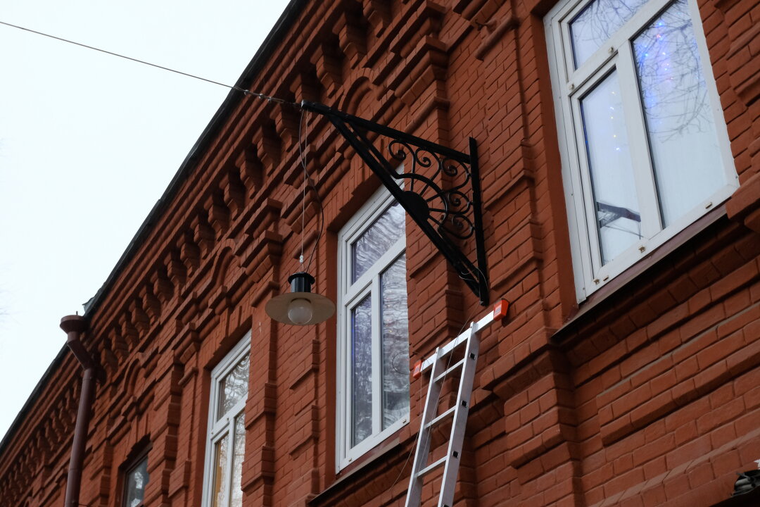 Есть в Самаре несколько домов, где сохранились дореволюционные крепления для фонарей. Уже было два подхода к таким объектам, но все что-то не получалось. Сейчас происходит третий – на Молодогвардейской, 95. О необычном черном треугольнике на фасаде, я знал давно, но не понимал что это. А вот мой товарищ реставратор Петр Шутов подсказал, что это крепеж для фонаря. И за пару минут накидал на телефоне, как он должен был крепиться. По соседству с этим домом находится архбюро TM моих знакомых Иры Фишман и Саши Шуткина, которые познакомили меня с жителем этого дома – Денисом. Оказывается, он приглядывал за этим крепежом, когда проходил ремонт дома, и настоял, чтобы его сохранили и покрасили. Таким квартетом мы и приступили к работам: Денис взял на себя электрику – он запитает фонарь в своей квартире, а мы будем менеджерить проект и выполнять работы руками. Ира с Сашей оплатили все материалы с донатов своего лектория, который проходил летом во дворе их бюро.