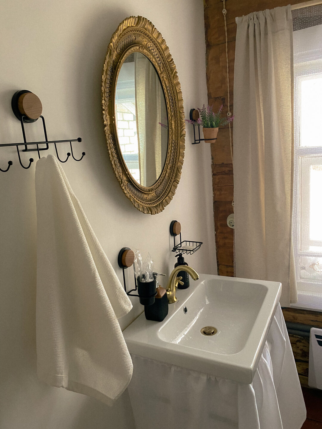 Елена: Это большая печь-голландка, которая роднит многие такие дома. Каждый может по-своему расставить витрины, вышить уникальные платочки и положить их на телевизор, но тепло в доме – заслуга гостьи из Европы. Многие никогда в жизни не видели такие дома изнутри, а печку и подавно! Уникальность нашего проекта – в гармоничном сочетании современных удобств с исторической атмосферой. История стала нашим главным ориентиром: все получилось после того, как мы обратились к родословной. Нашлись место, домик и гости, а для них нашлись мы. Нельзя забывать прошлое – без него невозможно светлое будущее.