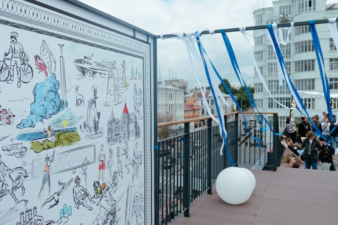 Хочется отметить коллекцию постеров, которые сложились в атмосферную фотозону: опен-колл, запущенный за неделю до начала фестиваля, помог совместить работы профессионалов своего дела и начинающих иллюстраторов. Получилось ярко и неожиданно.
