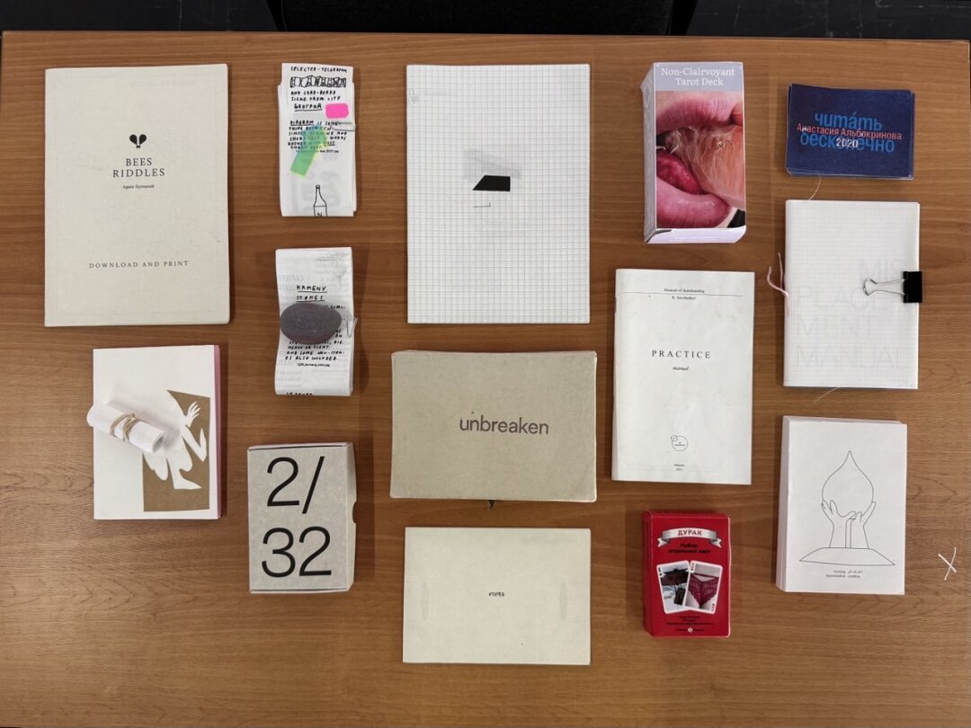В зинах мне интересно то, какие они бывают разные с точки зрения книги как медиума. Например, помимо классических книг, в которых мы, читатели, двигаемся от первой страницы к последней путем перелистывания, существуют зины-карты, зины-чековые ленты и даже зины-инструкции. Особый интерес в моей коллекции представляют зины-игры. Чаще всего это наборы карт, которые создают художники: англо-французские эротические таро Леры Лернер, фотоэкспедиция по России в виде колоды «Дурак» от Димы Птицына, ассоциативные карты с тридцатью двумя видами снега от типографии «Правда Севера» из Архангельска или совершенно необъяснимая игра Unbreaken с абстрактными изображениями и загадочными заданиями от арт-группы из Берлина.