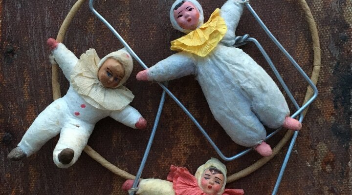 Купив свою первую игрушку, я начала собирать информацию, и следующие два года провела в областной библиотеке, знакомясь с технологиями изготовления и погружаясь в огромный и интересный мир. После первой игрушки были другие: я начала целенаправленно искать ватные елочные игрушки, постепенно углубляясь в реставрацию, потому что многим моим находкам было по семьдесят-восемьдесят лет, а о правильном хранении редко кто задумывается.