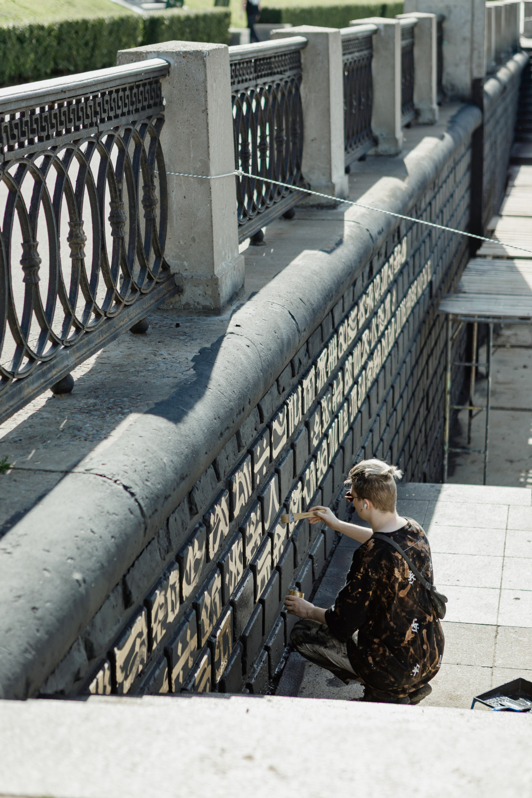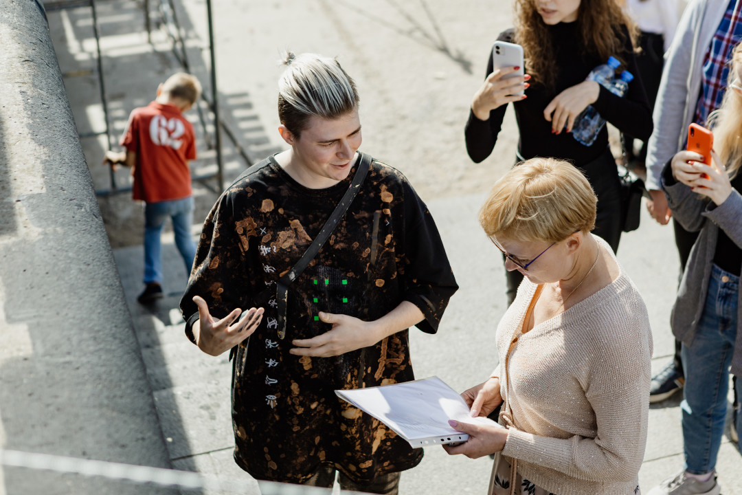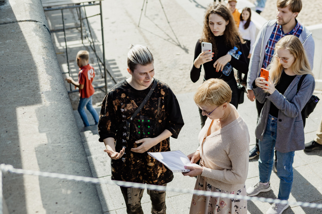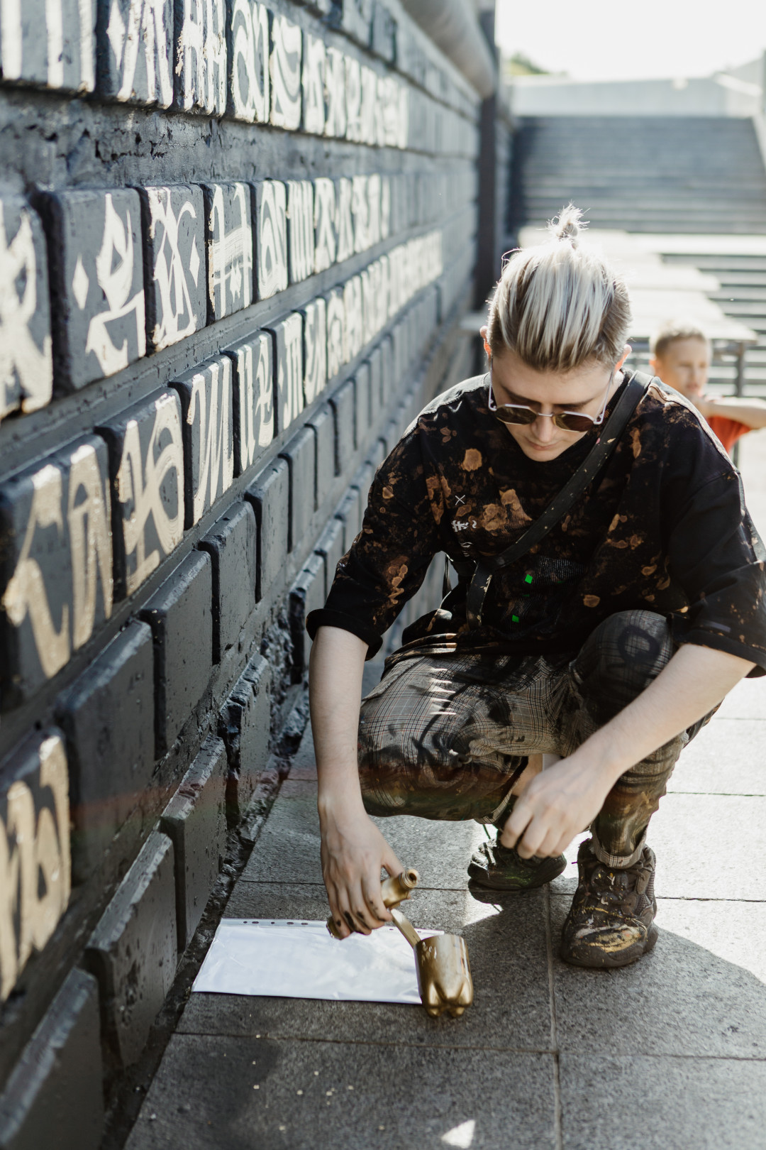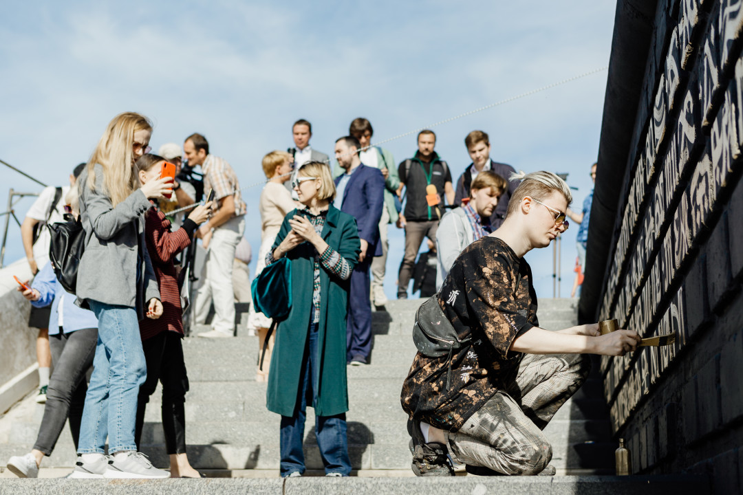 Поэтому в данном случае я пишу текст на русском языке, но при этом интегрирую в этот текст очень большое количество графем из других культур, из других языков, показывая тем самым, что может произойти с нашей письменностью», – рассказывает о своей работе Покрас Лампас (цитата из аккаунта проекта SAMARA GROUND 2020 в Инстаграме).