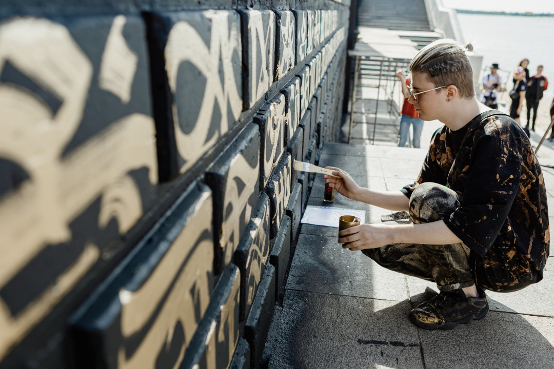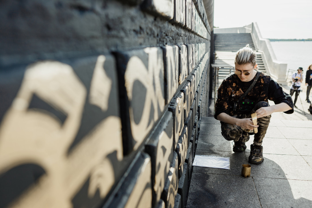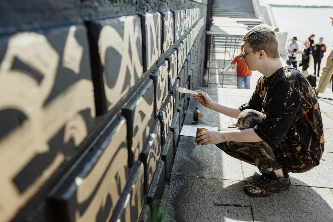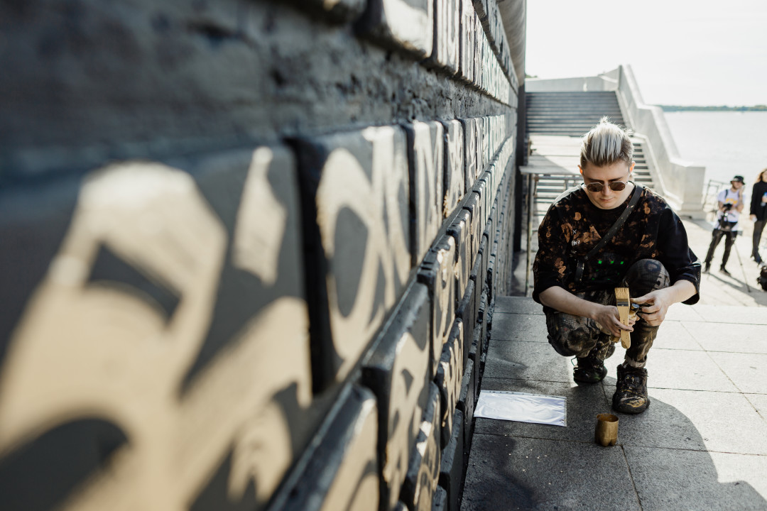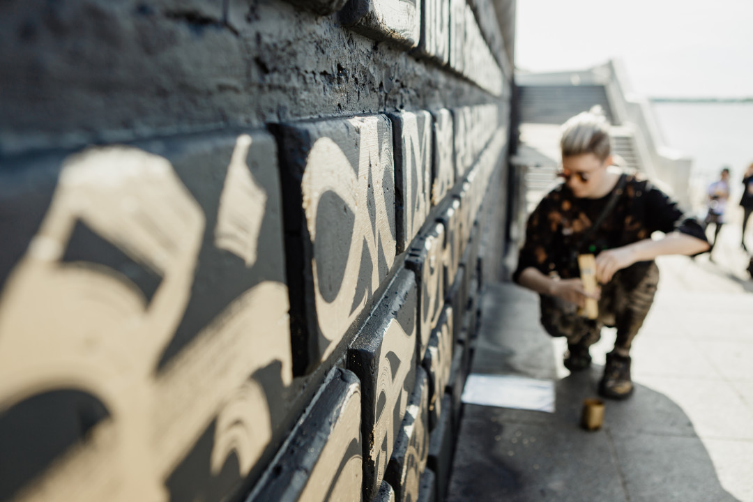 Художник Покрас Лампас в рамках международного проекта SAMARA GROUND 2020 расписал стену на набережной Волги у Маяковского спуска. Специально для «СМР.Собака.ru» фотограф Снежана Фадеева сняла, как работает Покрас. Посмотреть на это и пообщаться с художником также решила глава г.о. Самара Елена Лапушкина.