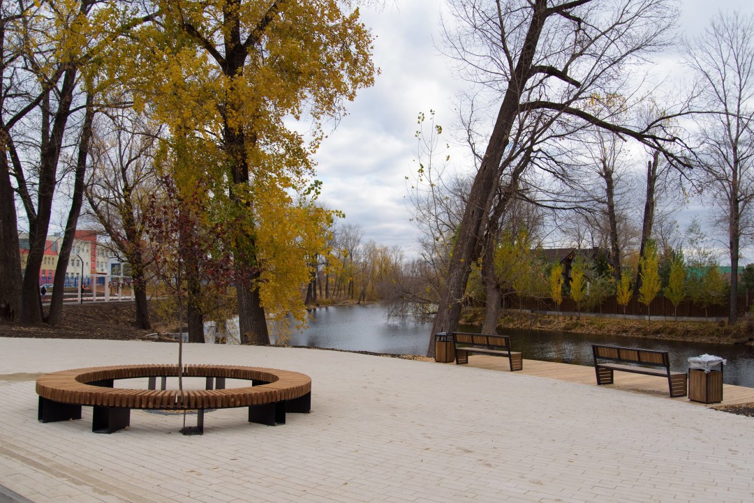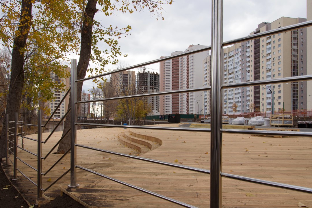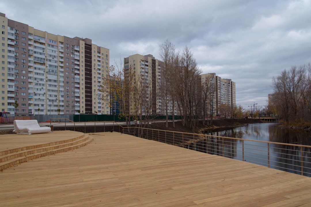 До комплексного благоустройства эта территория выглядела удручающе: была завалена мусором, пустыми бутылками, дырявыми покрышками от грузовиков, притягивала людей без определенного места жительства и любителей шумных уличных застолий с шашлыками. Случалось, что прямо в озеро мог заехать незадачливый водитель. Теперь же здесь хочется гулять всей семьей и приглашать друзей. Сочетание дерева и металла создает совершенно особенное настроение. Рельеф использован с умом, например, зимой продумали места для обустройства снежных горок. Мы ждем лета, чтобы в полной мере насладиться отдыхом на мини-набережной нашего замечательного озера.