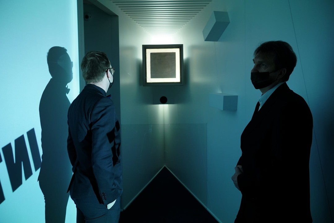 Основной штрих аудиенции — реальный взгляд «Черного квадрата» на зрителей. Портрет наблюдателя в момент восприятия фиксируется на камеру и попадает на YouTube-канал. То есть каждый пришедший и его эмоции запечатлены в цифровой вечности.