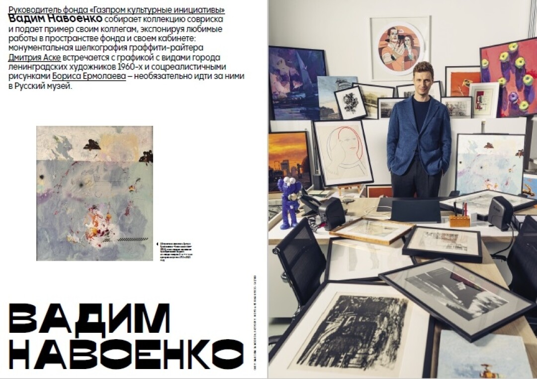 Руководитель фонда «Газпром культурные инициативы» экспонирует любимые работы (от стрит-арта до соцреализма!) в пространстве фонда и в своем кабинете.