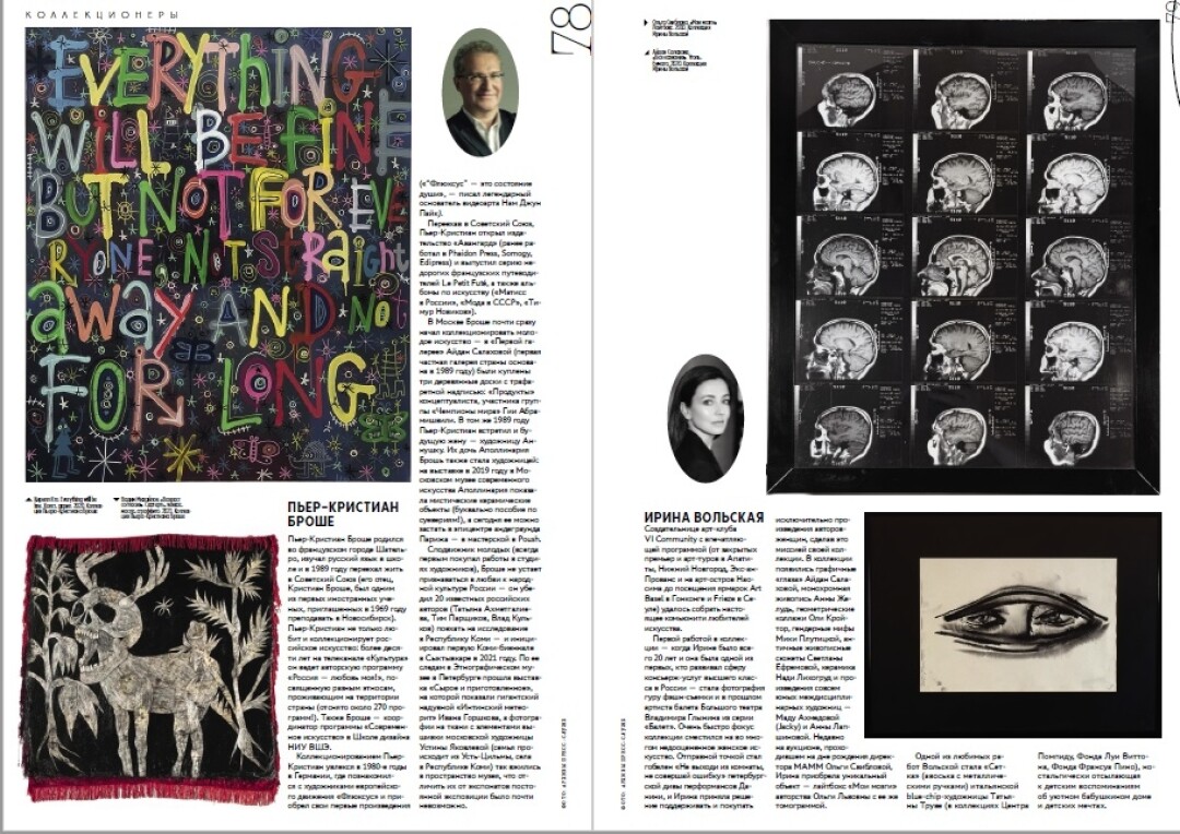 Внимание, у нашего арт-дропа есть побочное явление: вам тоже захочется коллекционировать! За время создания арт-дропа в дорогой редакции материализовались: майолика Дмитрия Марголина из серии «Казалось бы, обычный сад», коллаж на ткани Саши Браулова с лозунгом «Ничего не бойся» и стул с вайбами арт-группы Memphis от Кирилла Бурыгина, только еще более дикий. Теперь я присматриваюсь к вырубленным топором портретам — копиям мировых шедевров — Нестора Энгельке и мечтаю о картах таро от московских концептуалистов, главный редактор «Собака.ru» Яна Милорадовская — к трансцендентным полотнам Виталия Пушницкого, старший редактор отдела «Культура и искусство» Елена Юшина — к вышитым слезам Аси Заславской, а издатель Инесса Гаевская — к лайтбоксам Юлдус Бахтиозиной. Коллекционируйте с нами, коллекционируйте лучше нас!