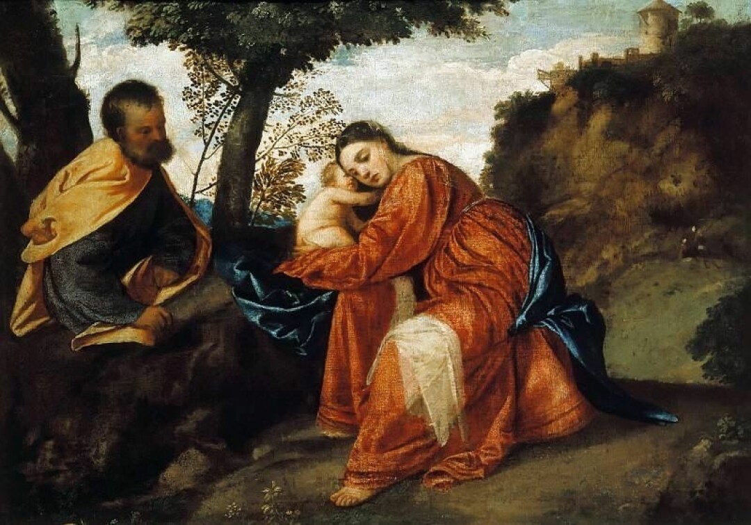 На полотне изображен религиозный сюжет, описанный в Евангелие от Матфея — Дева Мария, Иосиф и Иисус Христос бегут из Вифлеема. Картина написана маслом в 1512 году. На момент ее создания Тициану было примерно 20 лет.