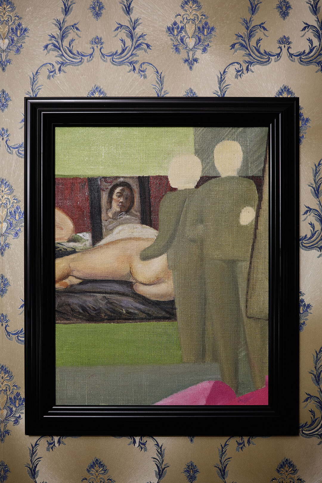 У меня нет никаких четких критериев, по которым я отбираю картины для себя, – я просто слушаю сердце. Например, одну из самых любимых картин в моем собрании написала не самарская художница Алена Терешко, с которой мы познакомились в резиденциях «Гаража». В ее мастерской особняком на огромной пустой стене висела одна картина, которая меня буквально заворожила. Но продавать ее Алена отказалась категорически. Я долго настаивала и даже парламентера подключила, и Алена назвала высокую цену. Я так понимаю, что это была попытка «отговорить» меня от покупки. Не получилось: сегодня она одна из жемчужин моей коллекции. Эта картина – своего рода оммаж Веласкесу: в картине есть зеркало, в котором отражаются участники сюжета, и надо поломать голову, чтобы понять, кто отражается и каким образом все это вписывается в сюжет и авансцену.