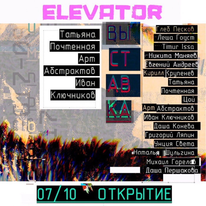 Открытие проекта –это пятичасовой марафон музыки, театра, танца, поэзии, кино, изобразительного искусства и фотографии. Бесконечный перформанс, в котором нет разделения на артистов и зрителей. Проект на грани искусства и медиа - Elevator официально откроется закрытой презентацией.